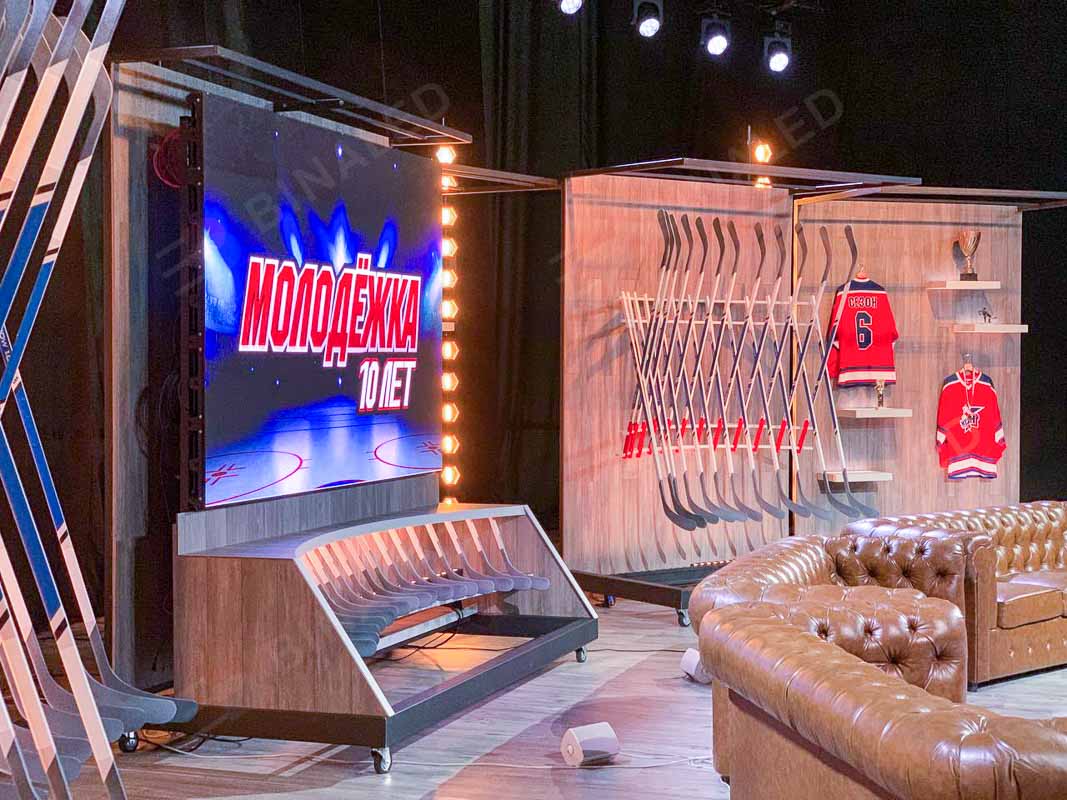 Светодиодный экран с шагом пикселя 1,58 мм размером 2,4 м × 1,7 для тв съёмок.