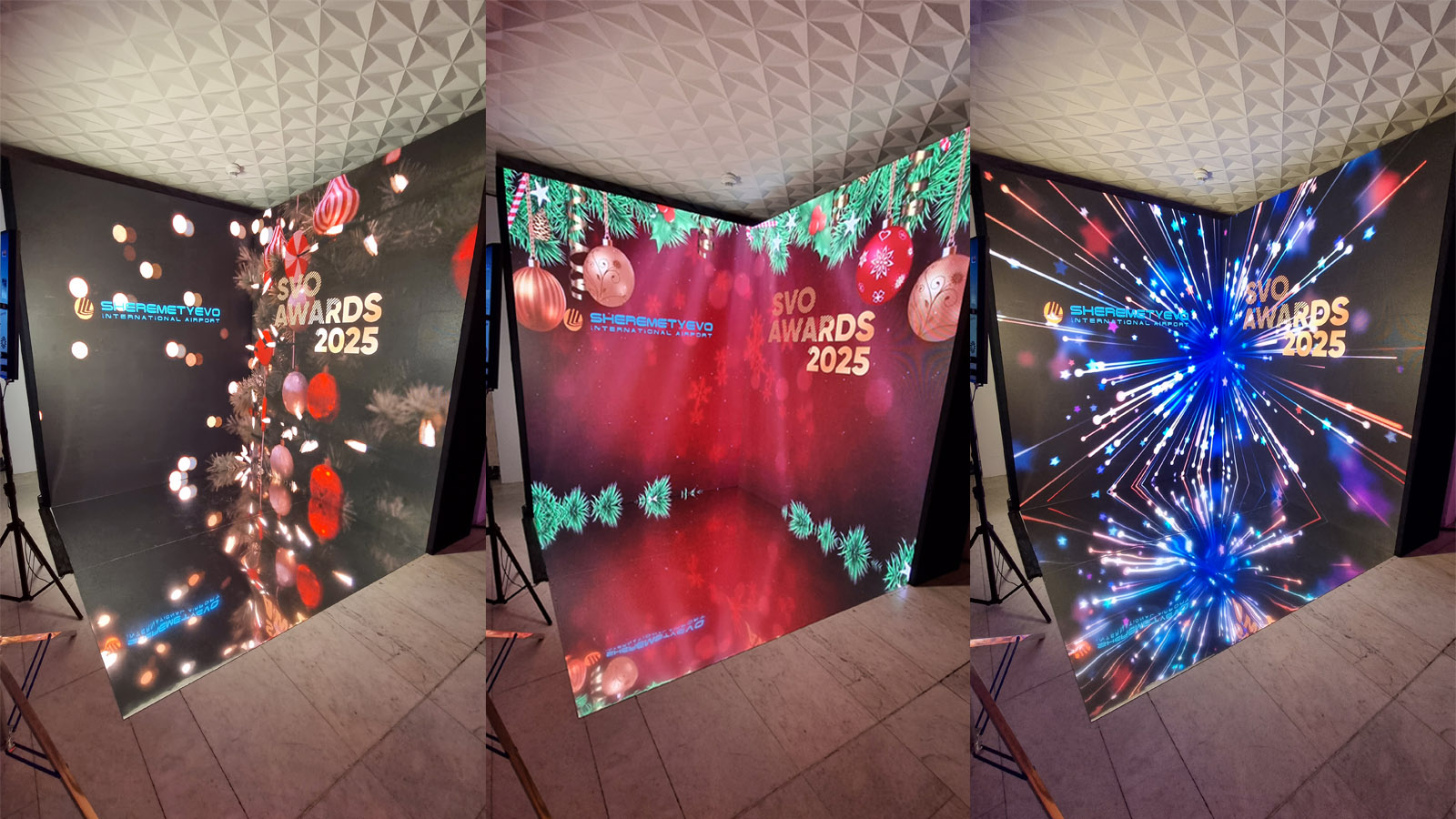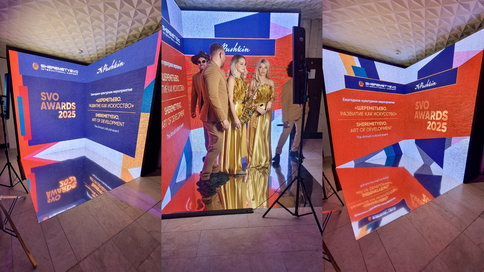 Угловая светодиодная фотозона для SVO Awards — воплощение концепции «Развитие как искусство» в Шереметьево не просто зона для селфи, а мультимедийный перформанс, который: